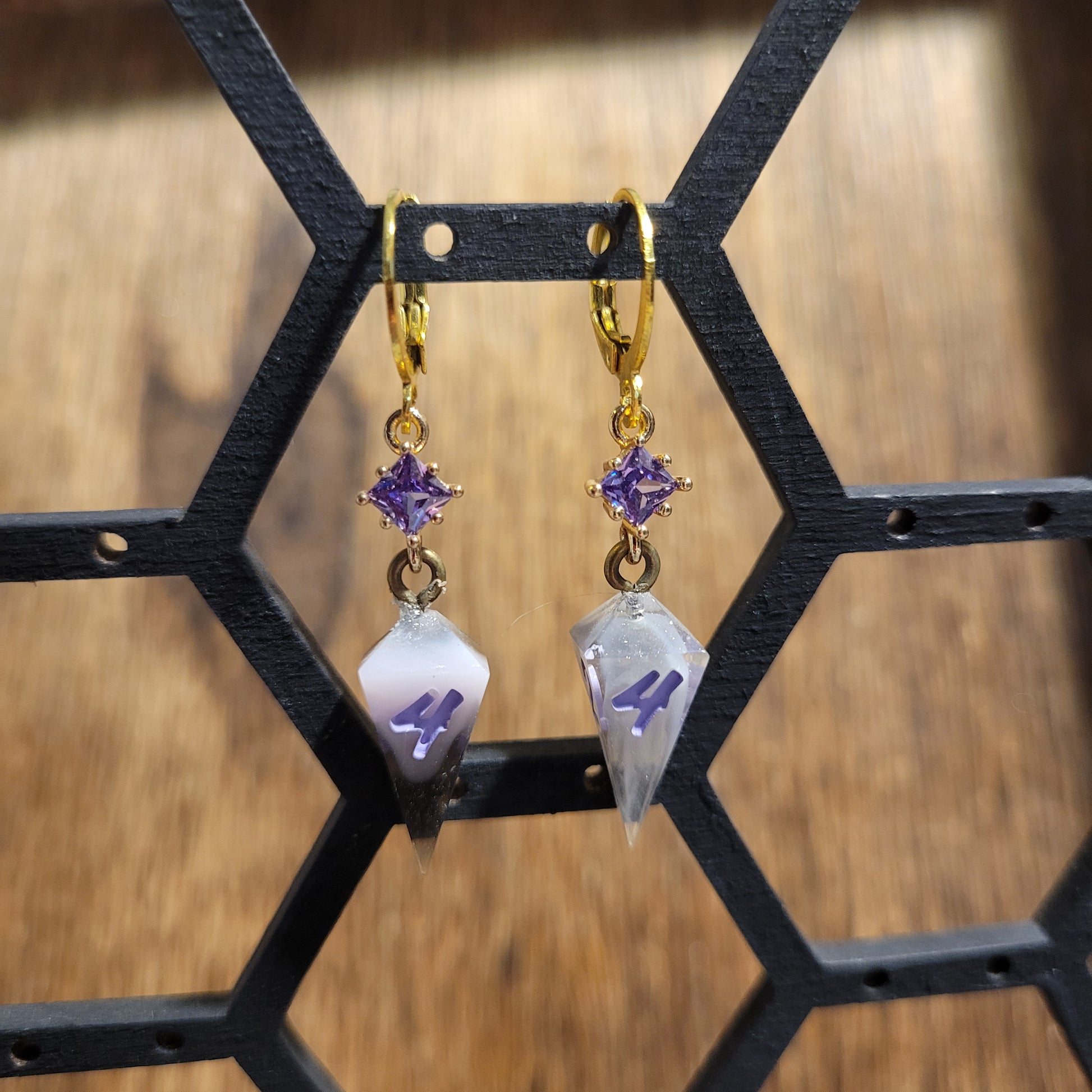 This smoky set of dice earrings is paired with the most perfect of purples for a curse that even the most cunning of fae cannot resist!