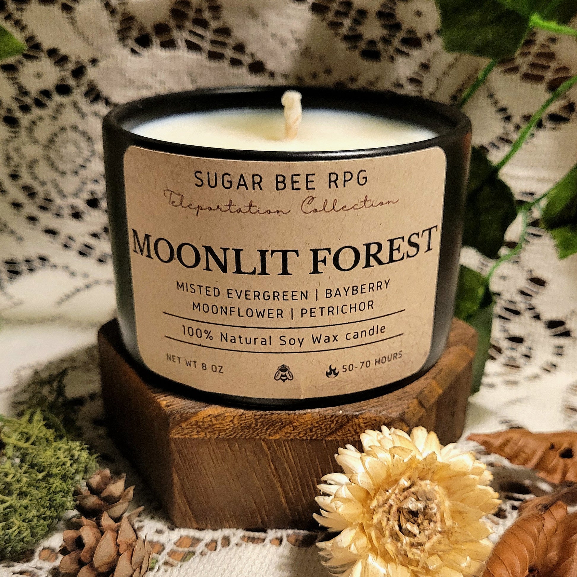 Notes of misted evergreen, sweet bayberries, moonflower, and earthy petrichor.