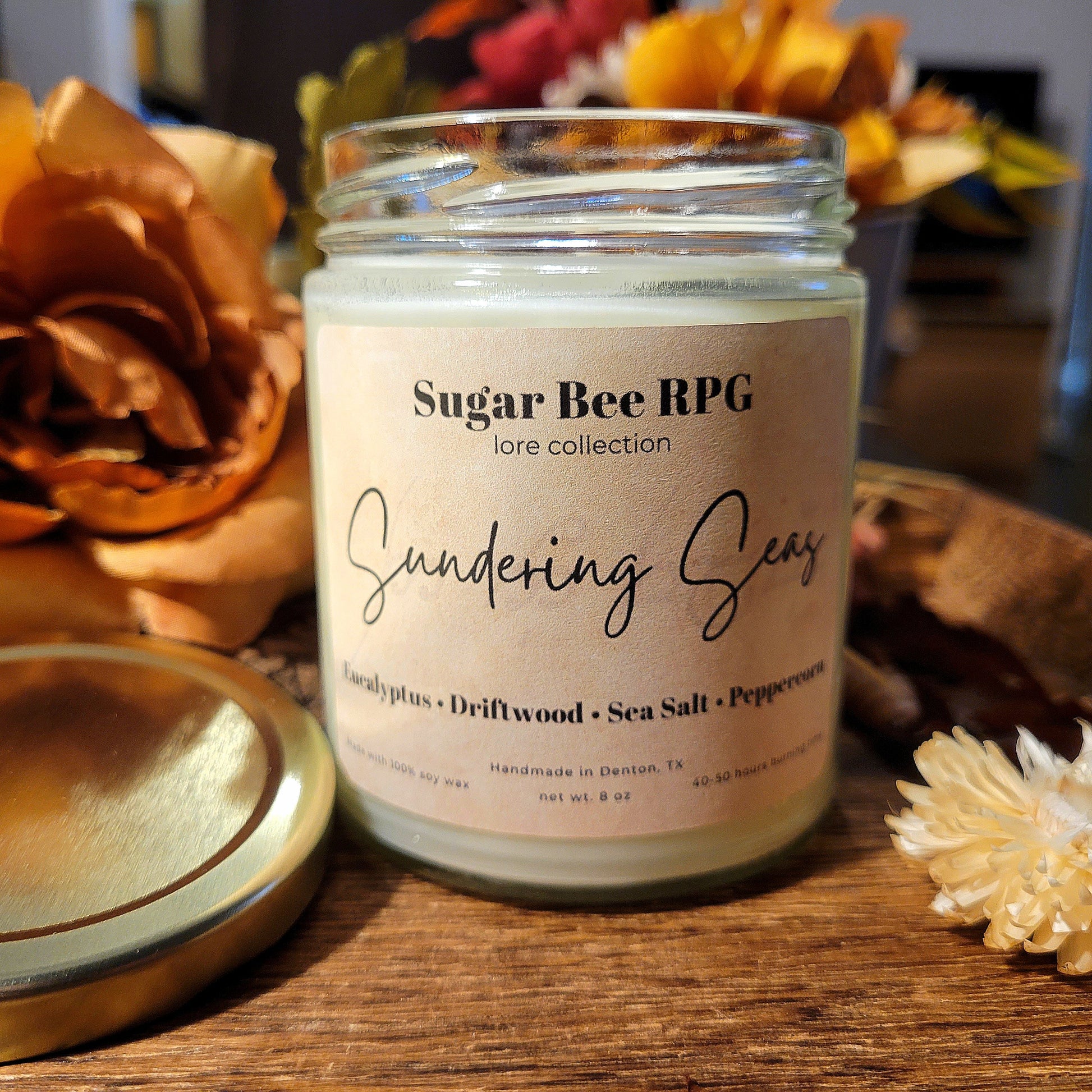 Sundering Seas: Warm sunlight reflecting over white shores, with driftwood sprinkled in sea salt and revitalizing eucalyptus. Fresh top notes of mint and ozone complimented by crushed peppercorn, with middle-earth notes of eucalyptus and greenery atop waves of sea salt and sandalwood.