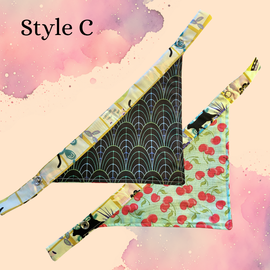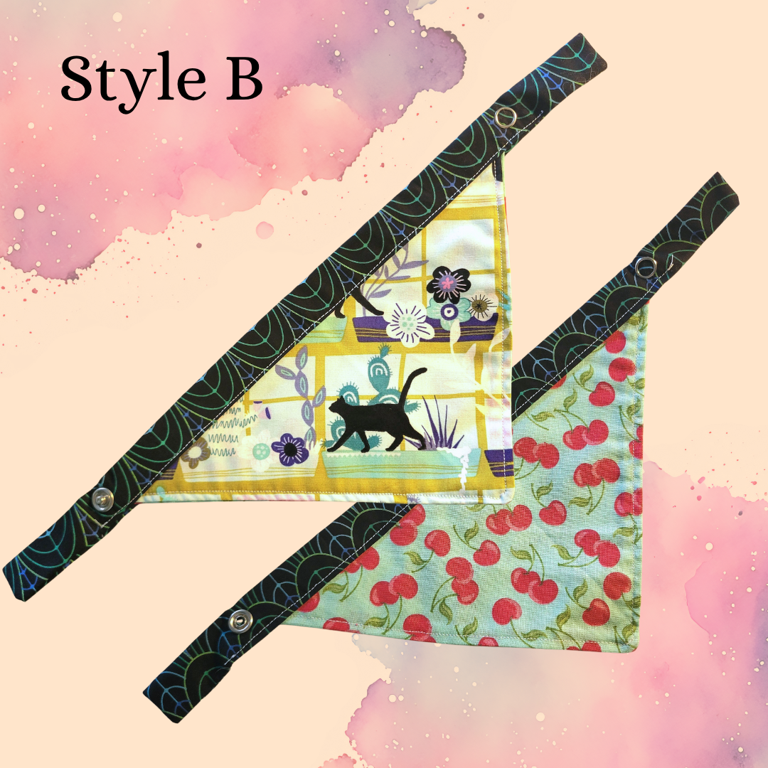 Cats like to feel cute, too, so now they can with our handmade, reversible bandanas! Choose between two styles on each side, giving you the flexibility to show off whichever vibe fits the day.