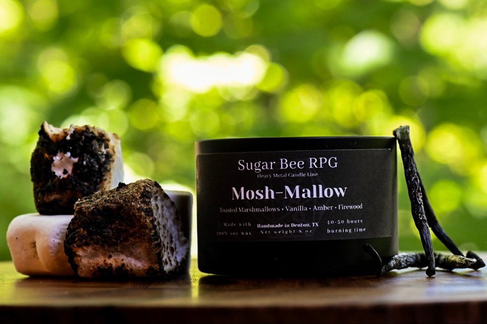 Mosh-Mallow: Top notes of toasted marshmallows and vanilla, with a dark amber middle note atop cozy campfires and crackling cedarwood.
