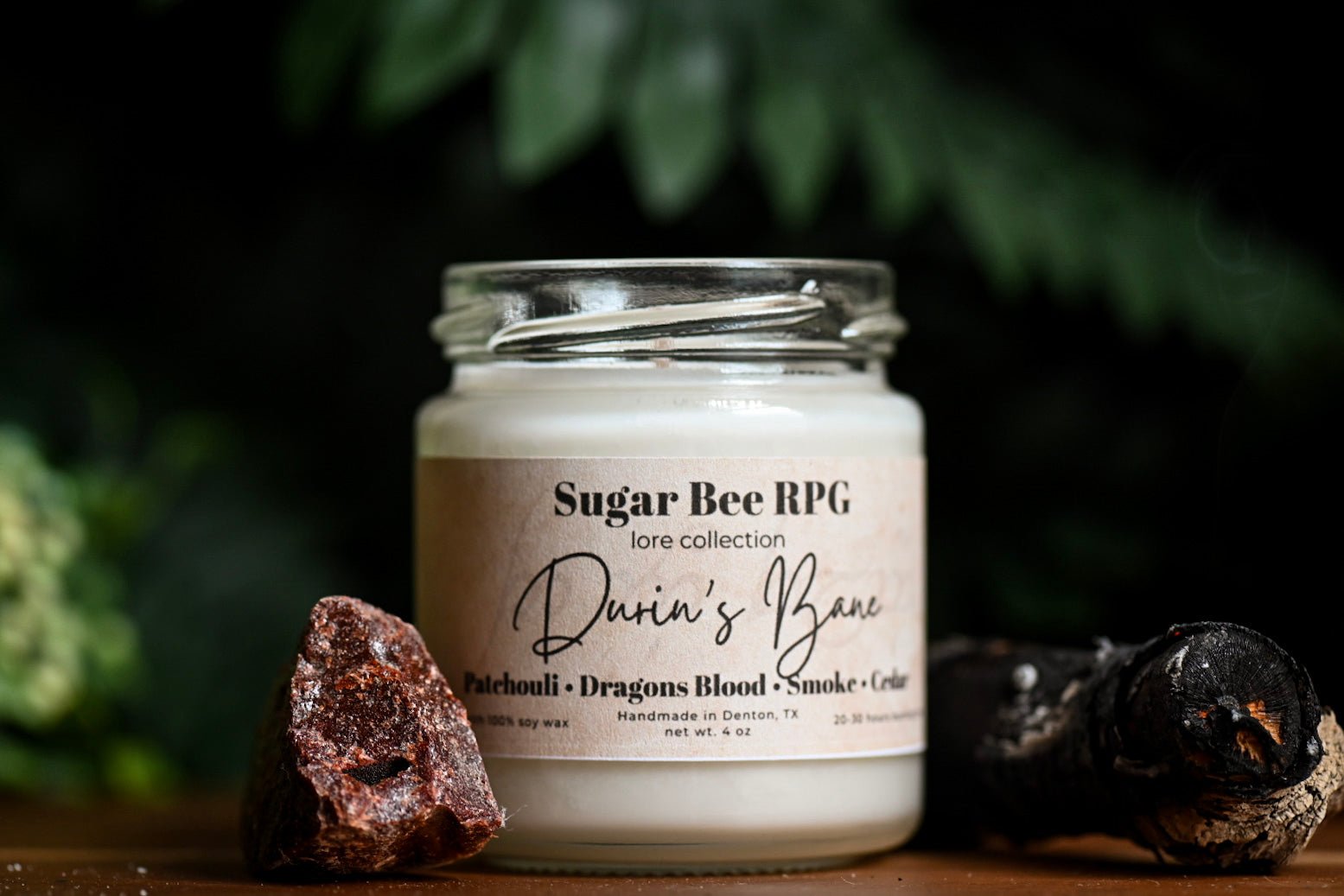Durin's Bane: The swirling smoke of burning incense, with glowing embers and the demise of a fallen beast. Dusty top notes of dragon’s blood and patchouli incense, with middle-earth notes of smoked cedar and oud on a bed of crackling firewood.
