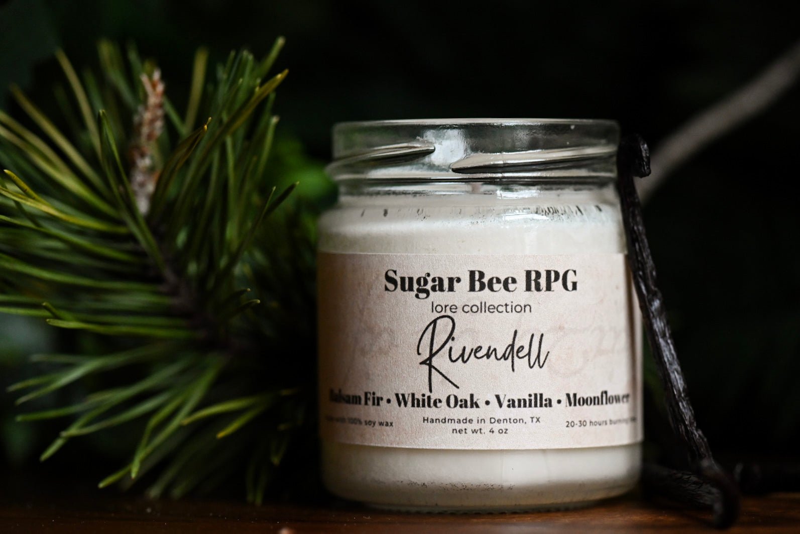 Rivendell: A soft reflection of moonlight glimmering over the secret valley of elves, producing an intellectual scent of sweet moonflower nectar, balsam trees, and aged oak. Green top notes of balsam fir and pine needles with middle-earth notes of white oak and cherry blossom, grounded by a blend of dark amber, vanilla, and musk.